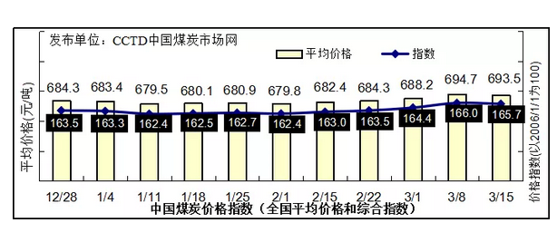 本期中國煤炭價格指數(shù)小幅回落。根據(jù)監(jiān)測數(shù)據(jù)測算,3月15日,中國煤炭價格指數(shù)(全國綜合指數(shù))為165.7點,比上期下降0.3點。